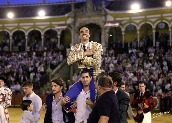 DANIEL DE LA FUENTE, A HOMBROS EN GUILLENA TRAS DESOREJAR A UN BUEN NOVILLO DE VIRGEN MARÍA